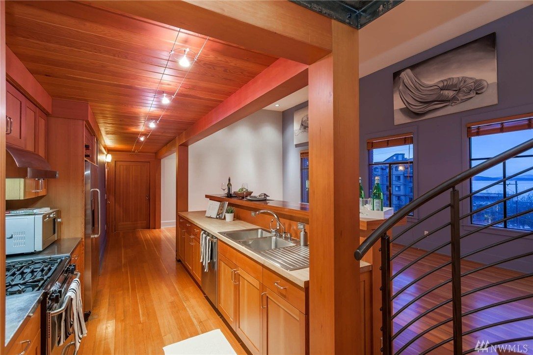 I saw this home when it was last on the market at the end of last year. It is a unique place, views of the Needle, good lower Queen Anne location, but the building is an older one.
